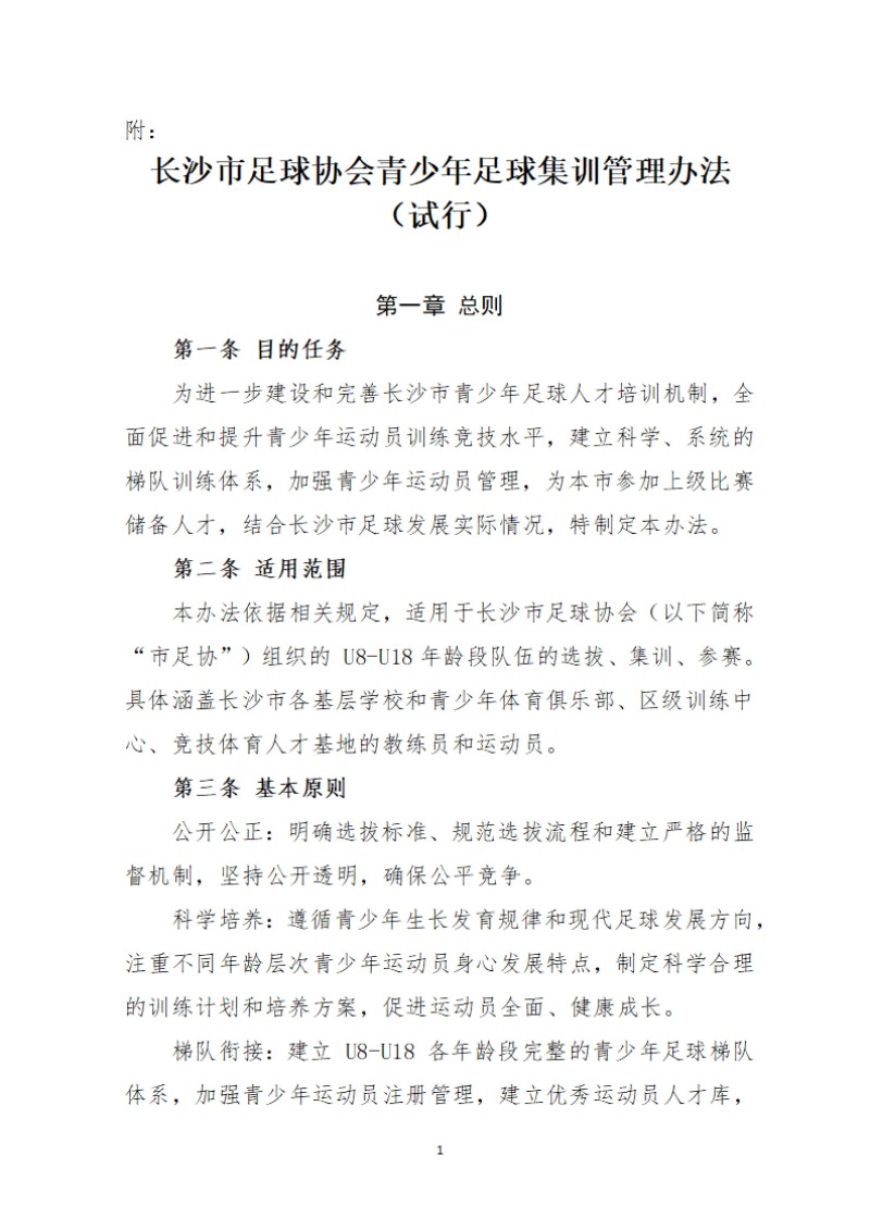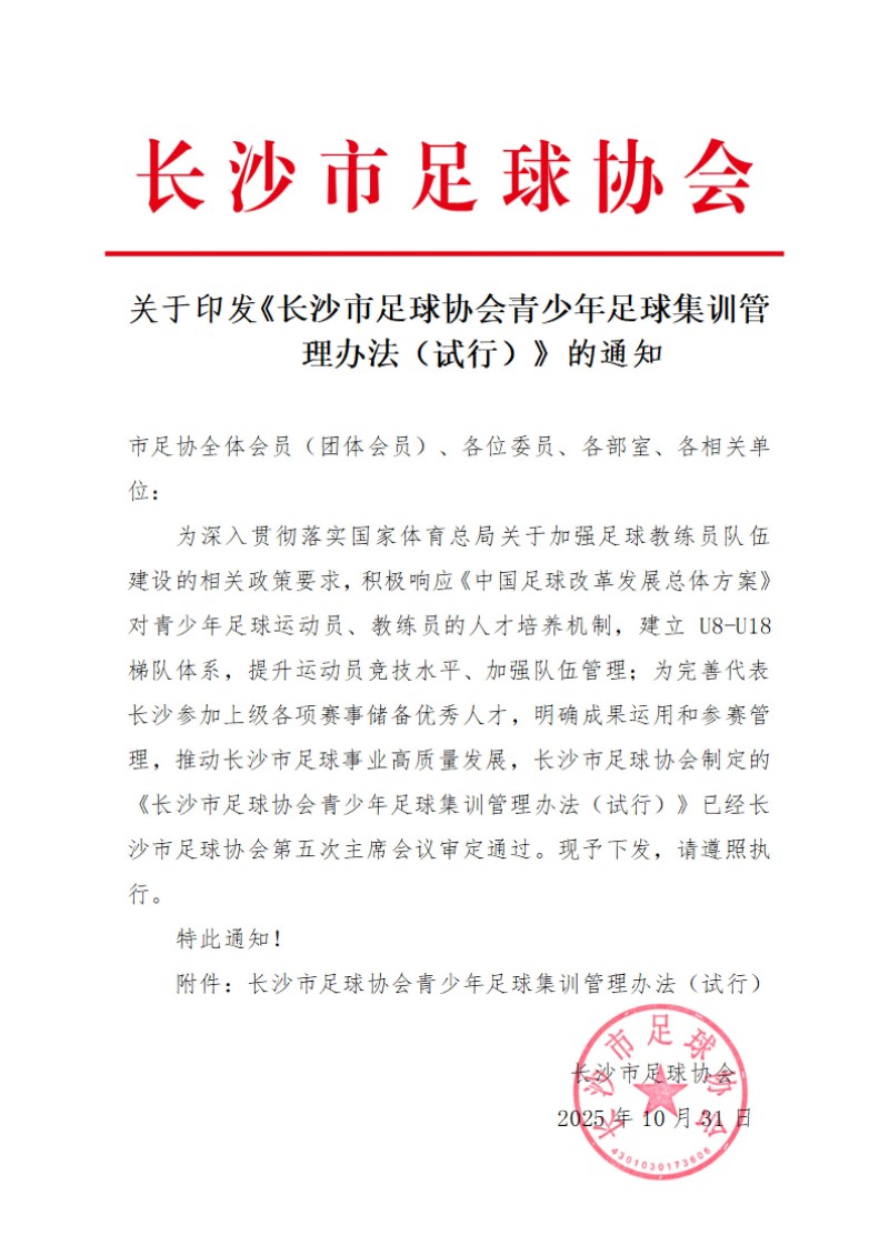 关于印发《长沙市足球协会青少年足球集训管理办法(试行)》的通知