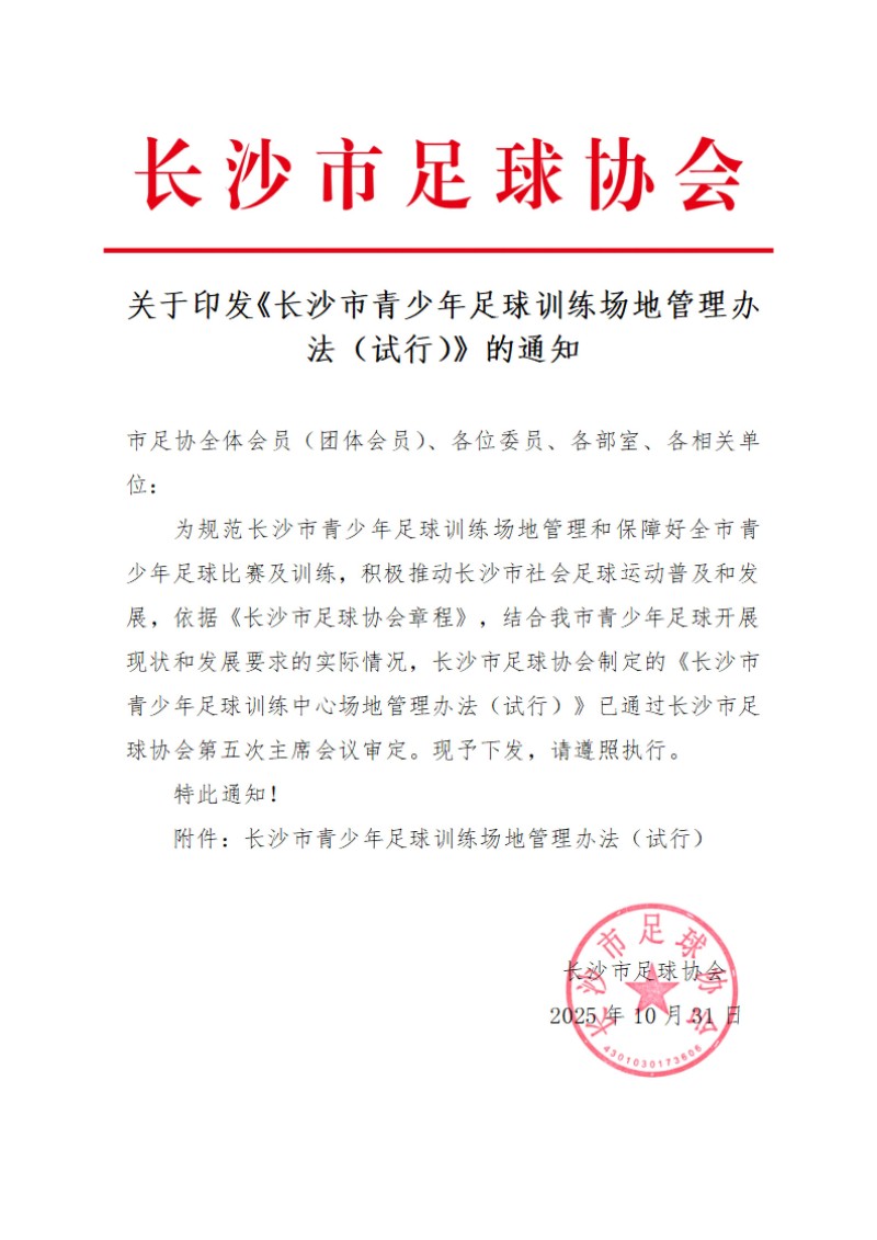 关于印发《长沙市青少年足球训练场地管理办法(试行)》的通知